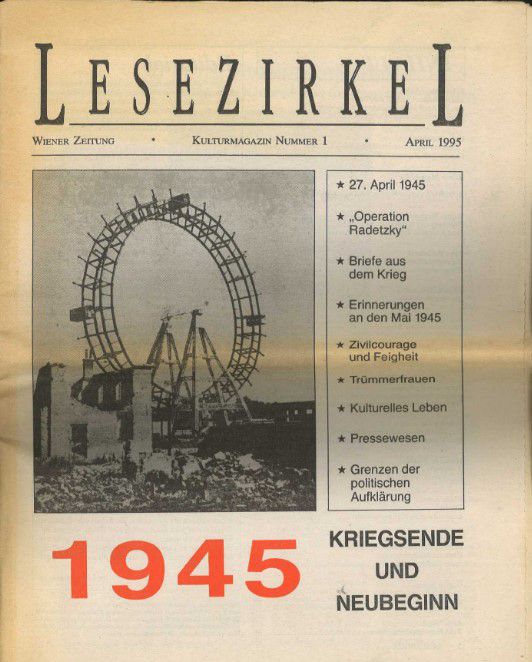 Das Kulturmagazin Lesezirkel erschien als Beilage zur Wiener Zeitung. Das Themenheft befasst sich mit dem Kriegsende 1945.