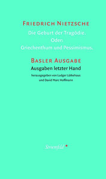 Band I der Basler Ausgabe der Werke Friedrich Nietzsches in den Fassungen letzter Hand enthält im Faksimile Nietzsches Die Geburt der Tragödie. Oder: Griechenthum und Pessimismus, erschienen 1886 im Leipziger Verlag von E.W. Fritzsch. Es handelt sich um die 'Neue Ausgabe', die insgesamt dritte, von Nietzsches philosophischem Erstling, den er unter dem Titel 'Die Geburt der Tragödie aus dem Geiste der Musik' 1872 im selben Verlag erstveröffentlicht, für die zweite Auflage von 1874 (im Buchhandelsvertrieb erst 1878) durchgesehen und korrigiert und 1886 mit der Neufassung des Titels, erweitert um den 'Versuch einer Selbstkritik', auf der Titelseite der Neuausgabe ohne die Prometheus-Vignette der Erstausgabe, publiziert hat.