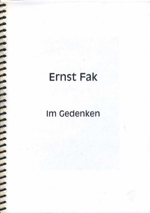 Ohne Impressum erzeugte Gedenkschrift für den Lehrer am BRG 4, Waltergasse, Ernst Fak. Zwei seiner Reden sind wiedergegeben: