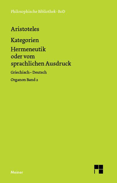 - Buchtitel: Organon. Band 2: Kategorien / Hermeneutik oder vom sprachlichen Ausdruck (De interpretatione). Griechisch-Deutsch