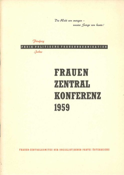 Der Bericht an die Frauen-Zentralkonferenz 1959 in Wien erschien im Rahmen des Informationsdienstes des Frauenzentralkomitees der SPÖ Nr. 9-11-1959.